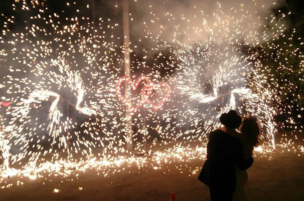 Наземные пиротехнические композиции из огненных вертушек являются единственной возможностью использовать пиротехнику, если свадебное мероприятие проводится в черте города, если рядом с местом проведения фейерверк шоу нет разрешенной площадки для запуска высотных салютов. Малая зона безопасности наземной пиротехнической вертушки позволяет устроить красочное фейерверк-шоу с множество огненных вертушек даже в собственном дворе между домами, там, где по правилам пожарной безопасности запрещено применение крупных х салютных батарей